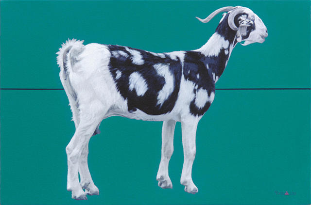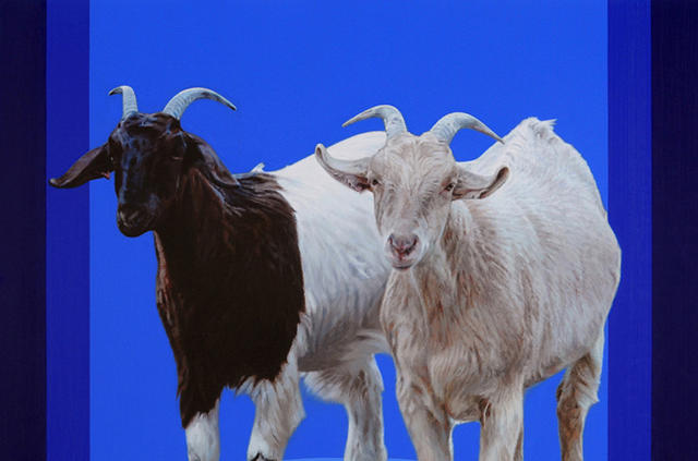 Το φόντο είναι εμπνευσμένο από την παλέτα των καρτούν χρωμάτων. Η "ποπ" αισθητική των χρωμάτων επιτυγχάνεται ως υποδήλωση ενός χώρου, ο οποίος ταυτίζεται με τον πρωινό ουρανό, την λίμνη, το σούρουπο κ.ο.κ. Η έκαστος σύνθεση μετατρέπεται σε ένα οπτικό παιγνίδι-ανακάλυψη καλώντας τον θεατή να εισαχθεί στο χώρο αυτό και να δημιουργήσει τα δικά του ορατά σημεία. Το φόντο αποτελεί ένα ανοικτό και τυχαίο δρόμ, τον οποίον εξερευνάει η κατσίκα, και εξερευνιέται και η ίδια. Η έκθεση προτείνει επίσης αρχειακή αναπαράσταση, με τίτλους που επεκτείνουν την φανταστική προδιάθεση που προϋποθέτει ο καλλιτέχνης.