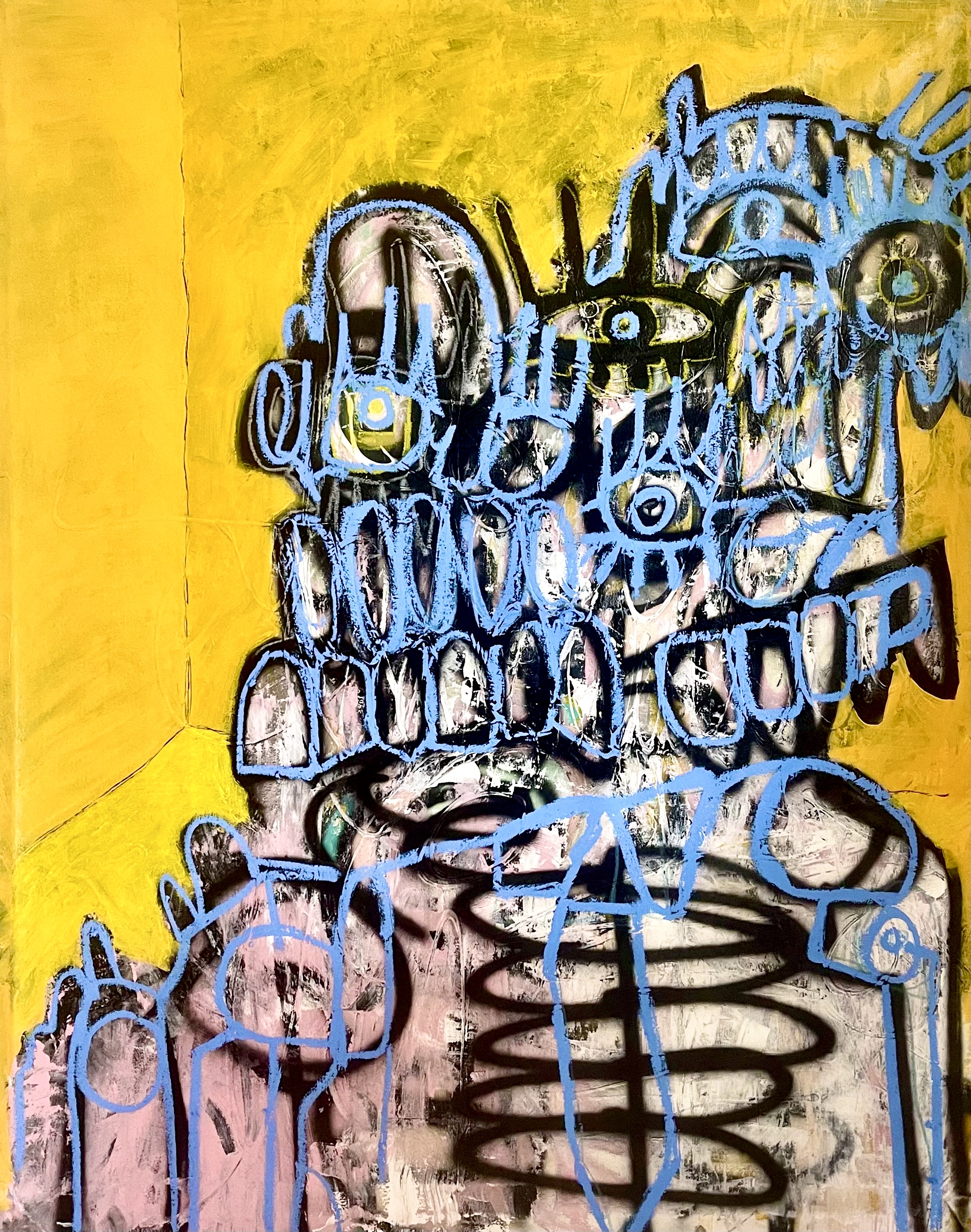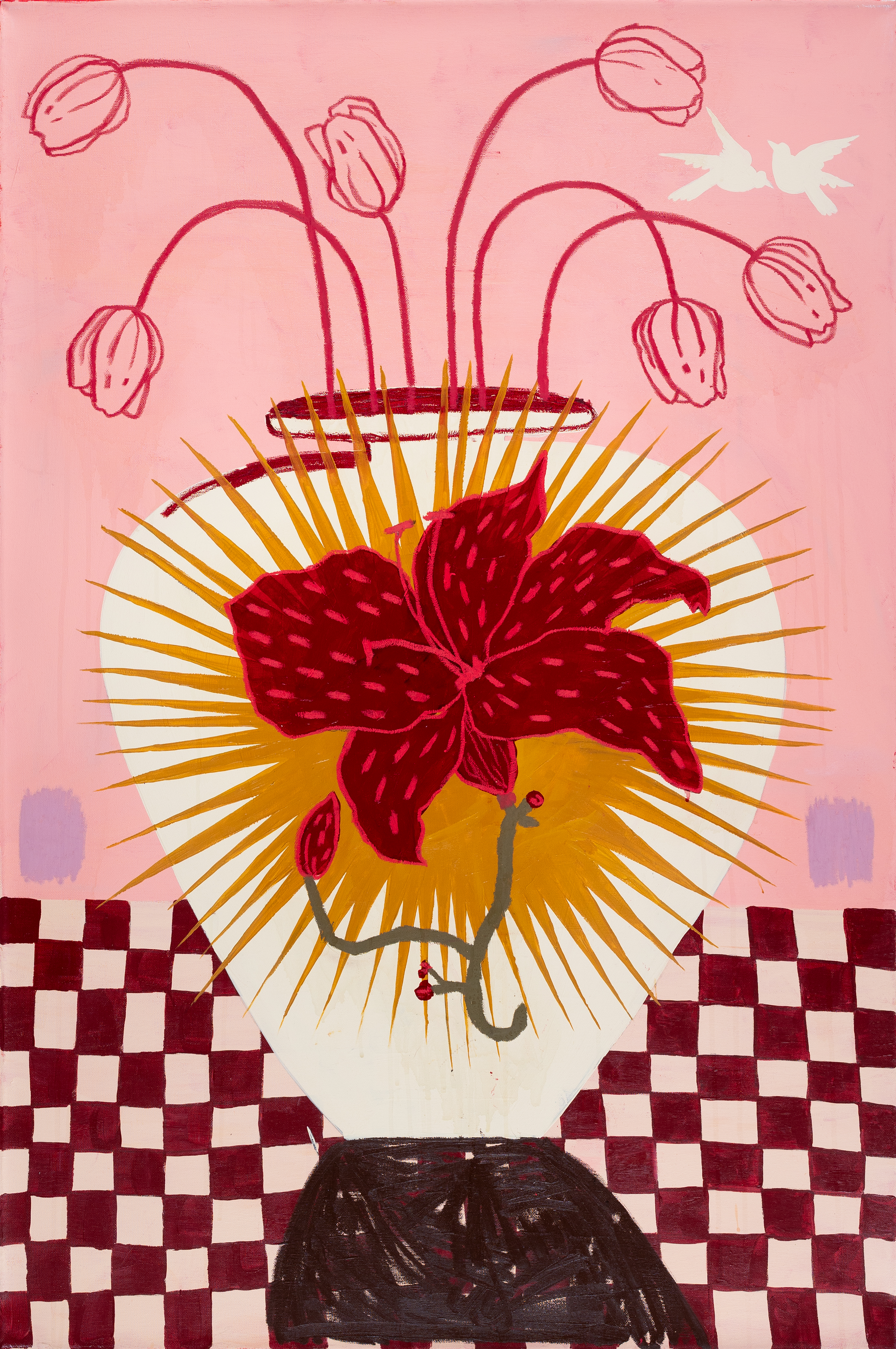 Η Antonia Figueiredo, Βραζιλιάνα καλλιτέχνις που ζει στη Λισαβόνα, παρουσιάζει ζωηρές, πολυεπίπεδες ζωγραφικές συνθέσεις όπου η παιγνιώδης αμεσότητα συνυπάρχει με εσωτερικό βάθος. Χρησιμοποιώντας ακρυλικό, λαδοπαστέλ και κολάζ, δημιουργεί εικόνες στις οποίες βοτανικά μοτίβα, κλασικές σιλουέτες και σύμβολα με ποπ αναφορές συνυπάρχουν σε ένα χαρούμενο, αλλά λεπτοδουλεμένο εικαστικό πεδίο. Κάτω από την έντονη παλέτα βρίσκεται μια πιο ήσυχη διερεύνηση της ελευθερίας, της ανθεκτικότητας και των συναισθηματικών υφών που συνοδεύουν την προσωπική μεταμόρφωση.