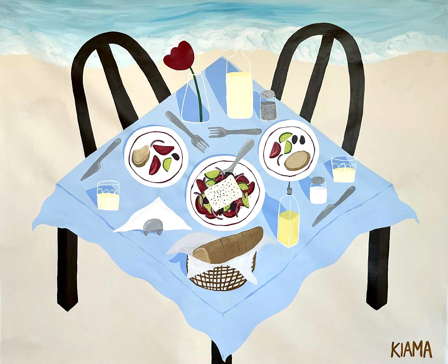 Η καλλιτέχνις Kiama Lisani, γεννημένη στην Αυστραλία και εγκατεστημένη στις Βρυξέλλες, παρουσιάζει ζωγραφικά έργα εμπνευσμένα από την ήσυχη ποίηση της καθημερινότητας. Οι συνθέσεις της μεταμορφώνουν απλές στιγμές—εσωτερικά καφέ, κοινά γεύματα, μεταβολές στη χρωματική ατμόσφαιρα—σε σκηνές που αποπνέουν ζεστασιά και οικειότητα. Με έντονο χρώμα και παιχνιδιάρικη σύνταξη, αποτυπώνει την τρυφερότητα που κρύβεται στις απλές εμπειρίες, προσφέροντας θραύσματα προσωπικής ζωής που αντανακλούν πιο καθολικά αισθήματα σύνδεσης και χαράς.
