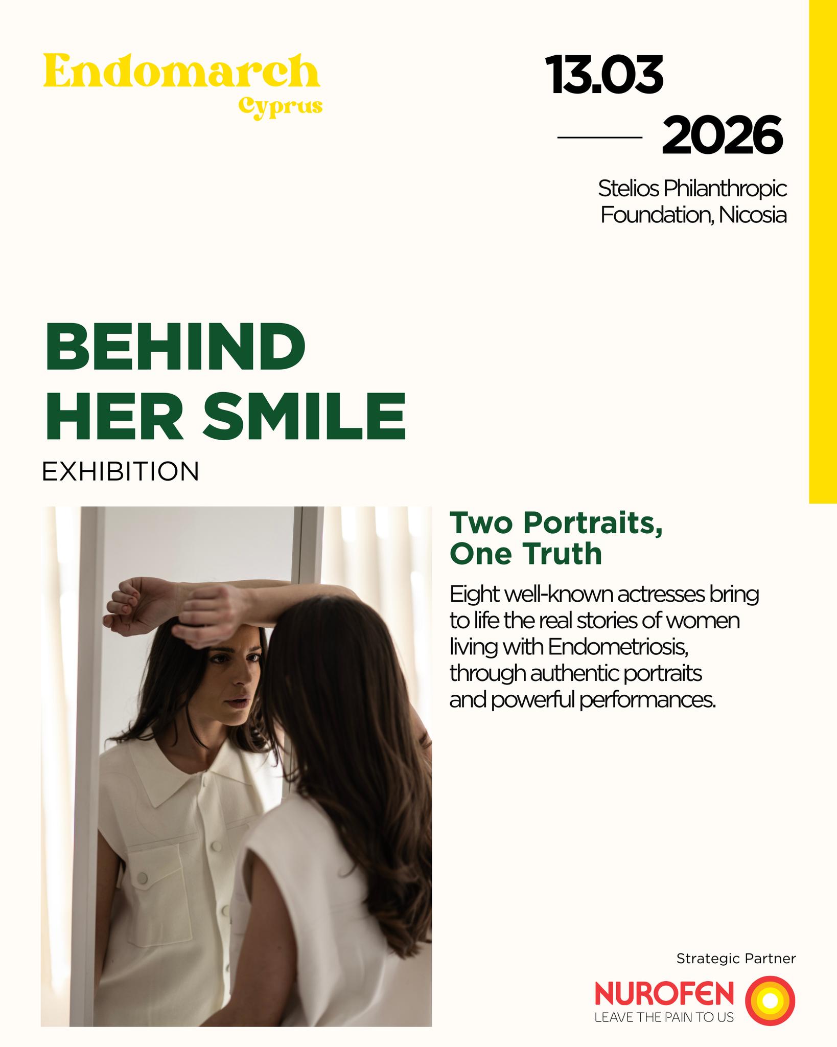 Ο Μη Κερδοσκοπικός Οργανισμός EndoMarch Cyprus, προσκαλεί το κοινό στη βιωματική έκθεση «Behind Her Smile - Two Portraits, One Truth». Η έκθεση θα παρουσιαστεί αύριο, Παρασκευή 13 Μαρτίου 2026, στις 18.30. στο Φιλανθρωπικό Ίδρυμα Στέλιος Χατζηιωάννου, στη  Λευκωσία, και την επόμενη Παρασκευή, 20 Μαρτίου 2026, στο Ξενοδοχείο Four Seasons, στη Λεμεσό.