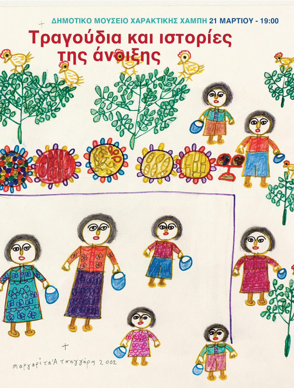 Σχεδιασμός αφίσας: Γιώργος Τσαγγάρης, σε σχέδιο της Μαργαρίτας Α. Τσαγγάρη (2002)