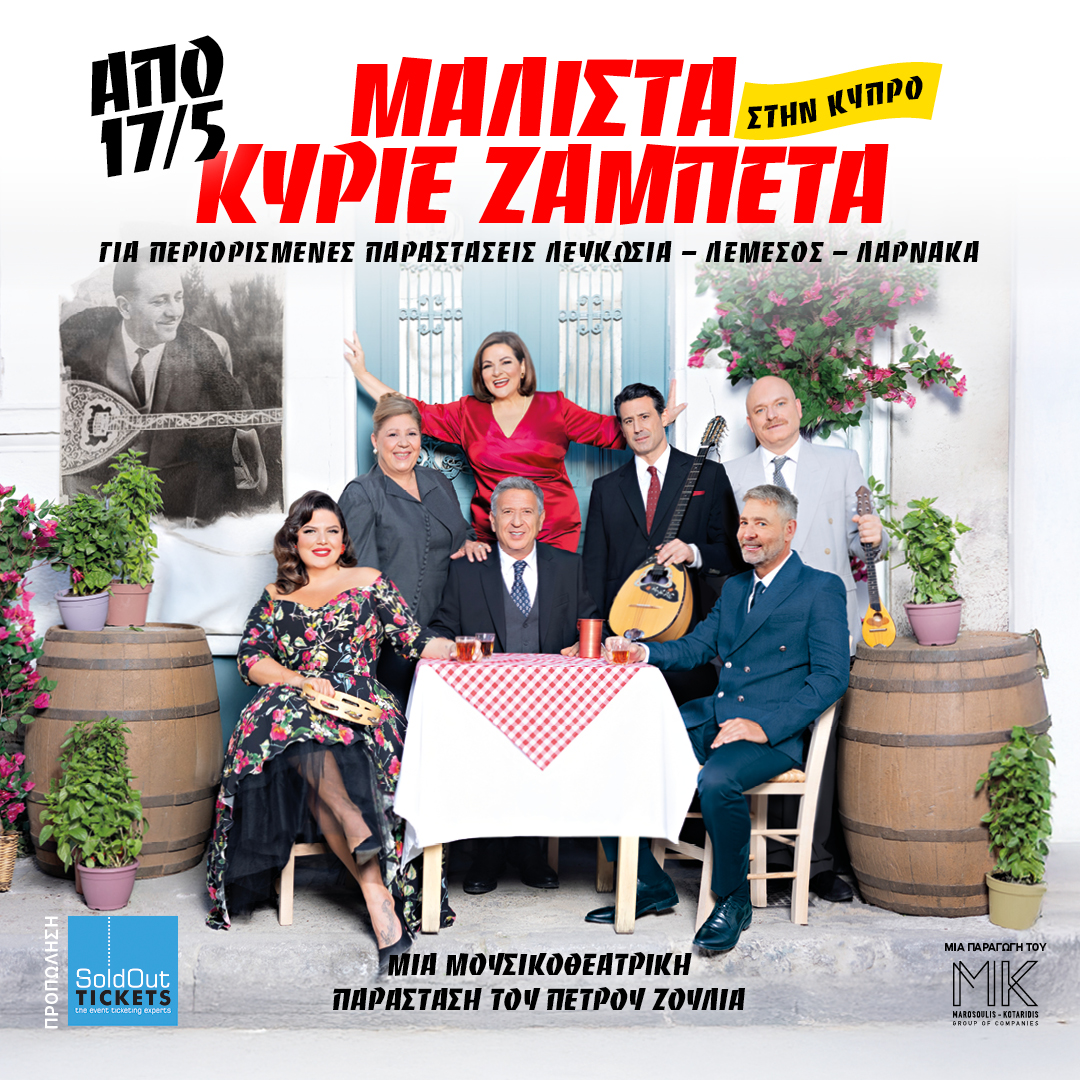 Η μουσικοθεατρική παράσταση του Πέτρου Ζούλια «Μάλιστα Κύριε Ζαμπέτα» που έχει λατρέψει το κοινό στην Ελλάδα, έρχεται για πρώτη φορά, στην Κύπρο. Με έναν θίασο all stars. Στη σκηνή θα δείτε τους: Βίκυ Σταυροπούλου, Κώστα Κόκλα, Δανάη Μπάρκα, Λευτέρη Ελευθερίου, Αντώνη Κρόμπα, την Χριστίνα Τσάφου και τον Θοδωρή Αθερίδη.