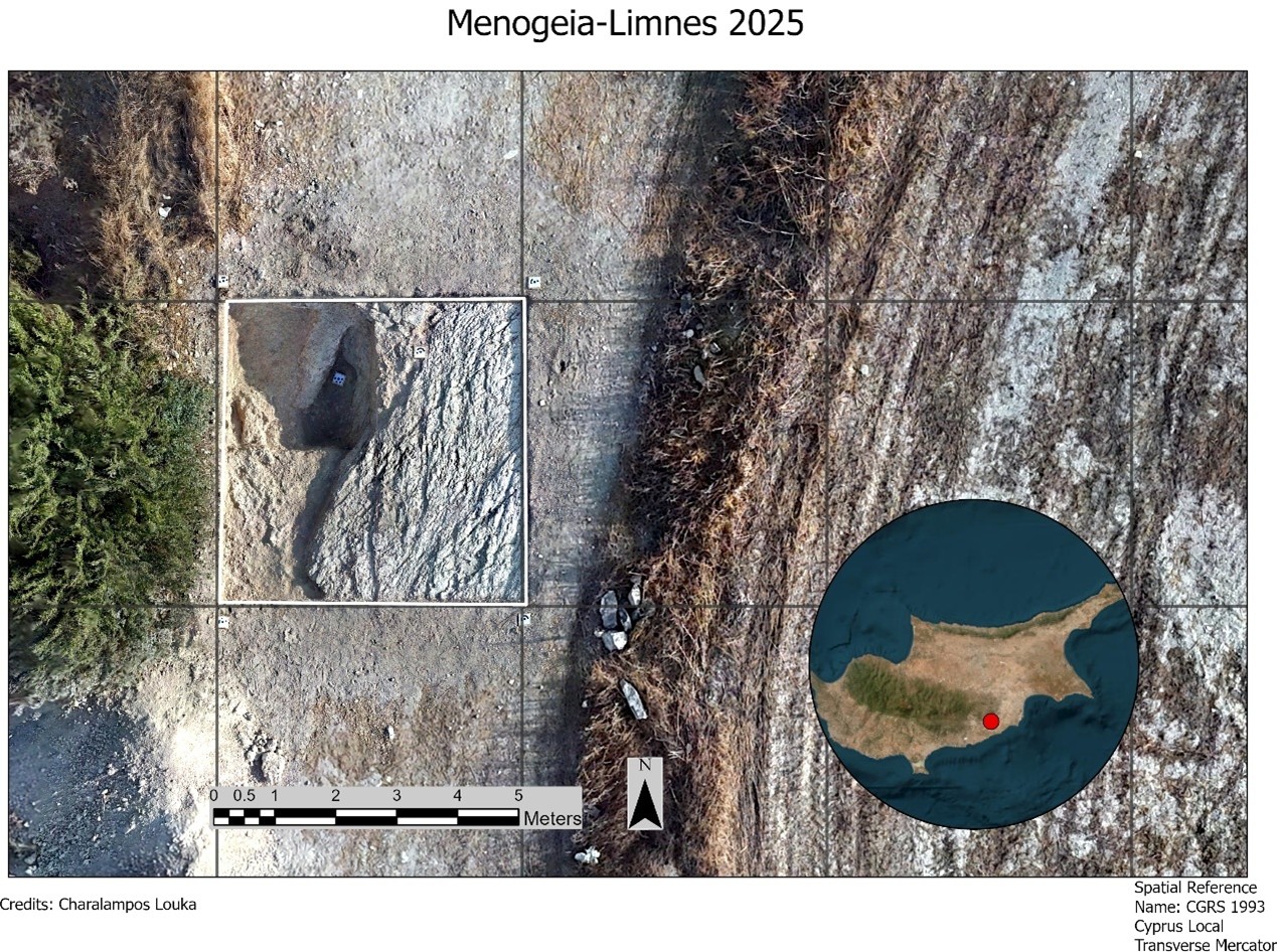 Στη θέση Μενόγεια Λίμνες, η ανασκαφή επικεντρώθηκε σε δοκιμαστική τομή σε σημείο που υποδεικνύεται ως εργαστήριο παραγωγής κεραμικής των 5ου-7ου αι. μ.Χ., με σημαντική συγκέντρωση απορριμμάτων όπτησης, πηλού και υπολειμμάτων καύσης. Αποκαλύφθηκε κατασκευή με κυκλική εγκοπή ενσωματωμένη στο φυσικό βράχο, πιθανώς πλησίον καμινιού όπτησης. Τα ευρήματα περιλαμβάνουν πολυάριθμη κεραμική, ξυλάνθρακα, γυάλινα και μεταλλικά θραύσματα, επιβεβαιώνοντας τη λειτουργία της θέσης ως βιοτεχνικού κέντρου κατά τους πρώιμους βυζαντινούς χρόνους (5ο-7ο αι.).