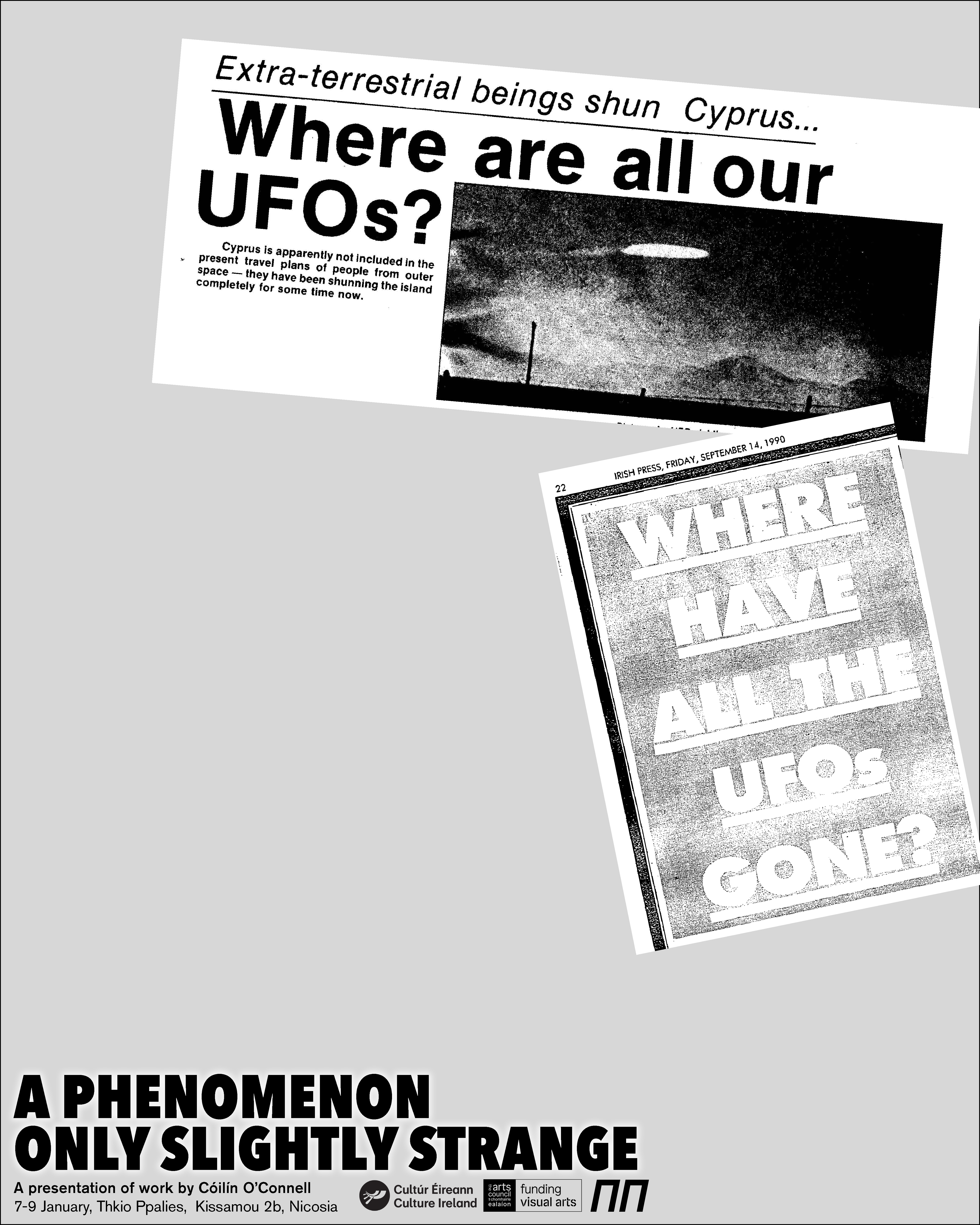 Στις 7 Ιανουαρίου στις 18:00 ο Cóilín θα διαβάσει το κείμενό του A Phenomenon Only Slightly Strange, το οποίο διερευνά όψεις του φαινομένου των UFO σε σχέση με την Ιρλανδία και την Κύπρο. Θα ακολουθήσει προβολή των ταινιών Looking for Freedom? (2024) του Michael Dignam και Forty-five Seconds (2024) των Ruth Clinton και Niamh Moriarty.