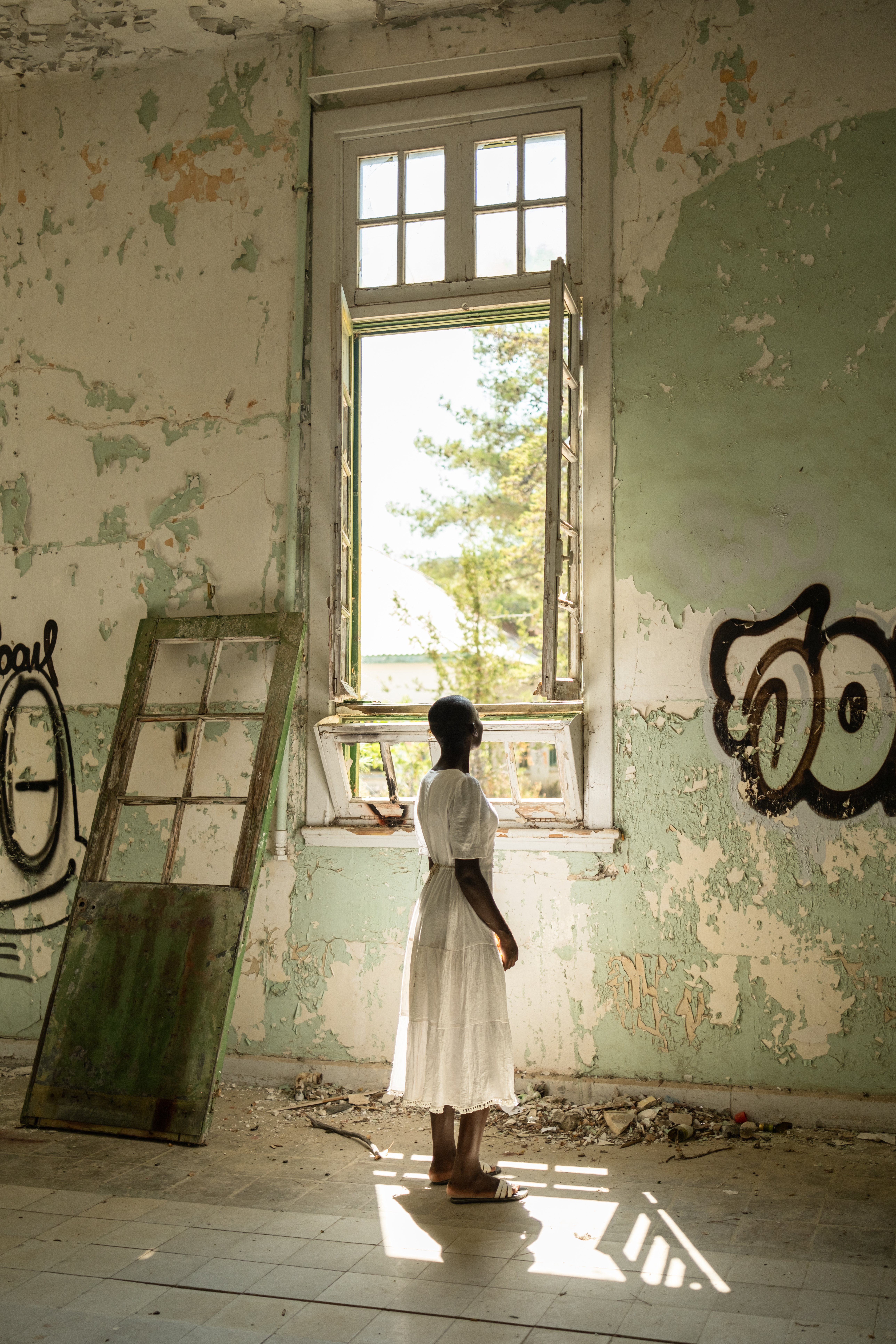 Την ίδια περίοδο, έπεσε πάνω σε μια ανάρτηση στο Instagram που τη συγκίνησε. «Κάποια έγραψε: 'Νιώθω ασφαλής επειδή…' και απαρίθμησε λόγους», λέει. «Και τότε συνειδητοποίησα ότι εγώ δεν είχα νιώσει ποτέ ασφαλής μεγαλώνοντας». Η λέξη «ασφάλεια» άρχισε να επιστρέφει επίμονα. Πριν από αυτό είχε φωτογραφίσει την Daisy, δημιουργώντας μια οπτική αφήγηση για μια γυναίκα που κινείται ανάμεσα στο φως και το σκοτάδι, ανήσυχη χωρίς να μπορεί να εξηγήσει το γιατί. Μετά από εκείνη την ανάρτηση, όλα μπήκαν στη θέση τους. «Το να νιώθεις ασφαλής έγινε το θέμα», λέει. «Ήξερα ότι αυτό ήταν το θέμα του πρότζεκτ».