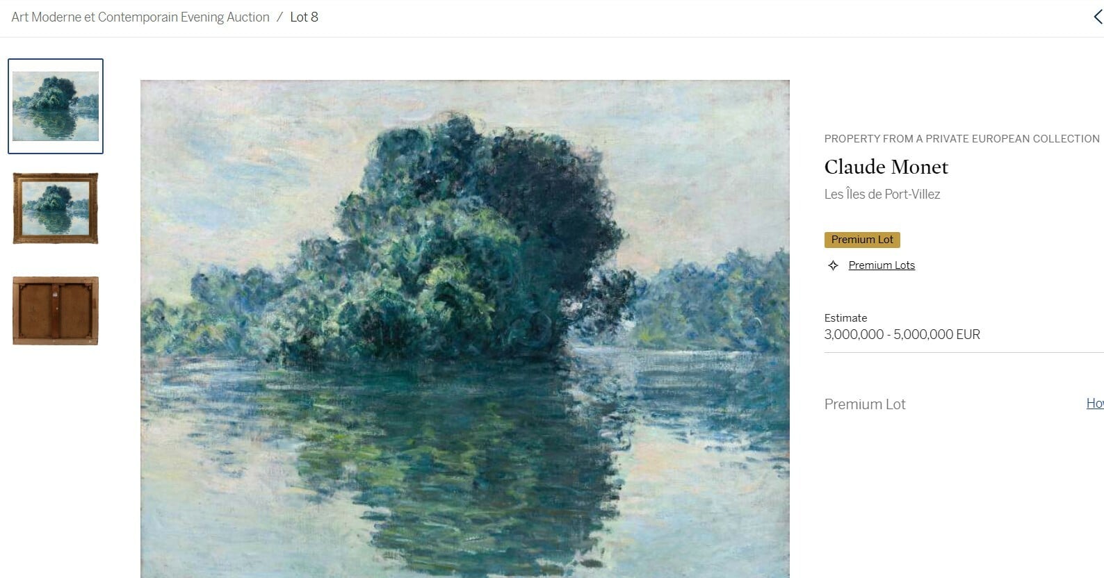 Δύο σπάνιοι πίνακες του Κλωντ Μονέ αναμένεται να βρεθούν στο επίκεντρο της δημοπρασίας Μοντέρνας και Σύχρονης Τέχνης του οίκου Sotheby's στο Παρίσι στα μέσα του μήνα.