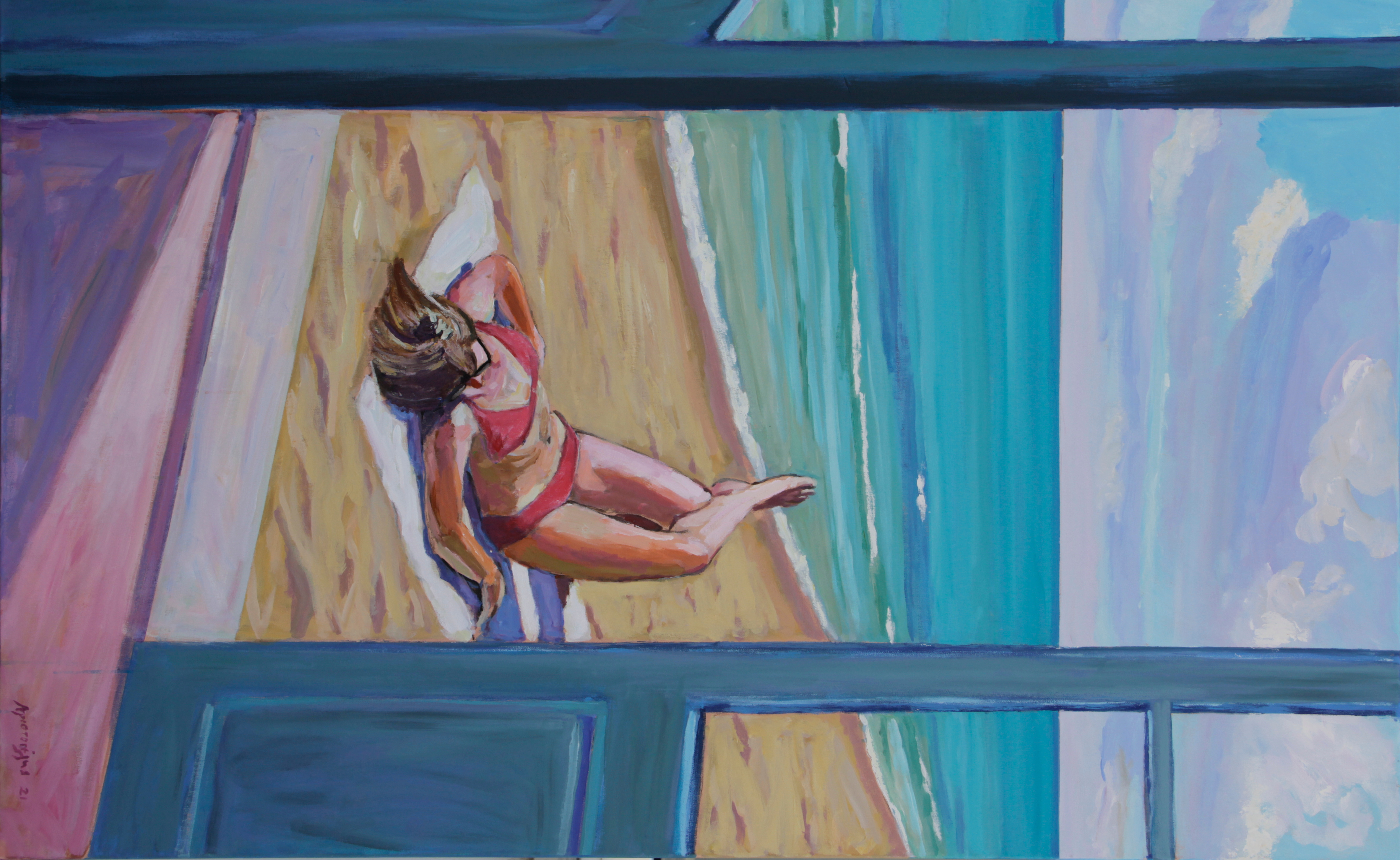 Στην πιο πρόσφατη ενότητα της δουλειάς του, δημιούργησε μια σειρά έργων με γυναικείες φιγούρες που κάθονται στην άμμο κάτω από τον καλοκαιρινό ήλιο και κοιτούν τη θάλασσα. Κάποιες φαίνονται να περιμένουν κάτι, άλλες να απολαύουν απλώς τη ζεστασιά του φωτός, ενώ άλλες μοιάζουν βυθισμένες σε αναπόληση. Τα έργα αυτά έχουν συμβολικό χαρακτήρα, προσθέτει ο Δημητρίου, λέγοντας πως το θέμα λειτουργεί ως αφορμή για την έκφραση εσωτερικών καταστάσεων και όχι ως απλή απεικόνιση της σκηνής. Το συναίσθημα και η συγκίνηση πίσω από την εικόνα αποτελούν, λοιπόν, τον βασικό του άξονα.