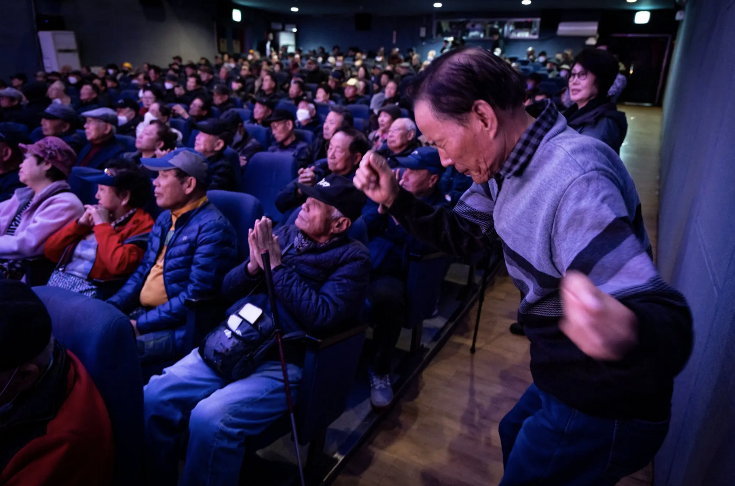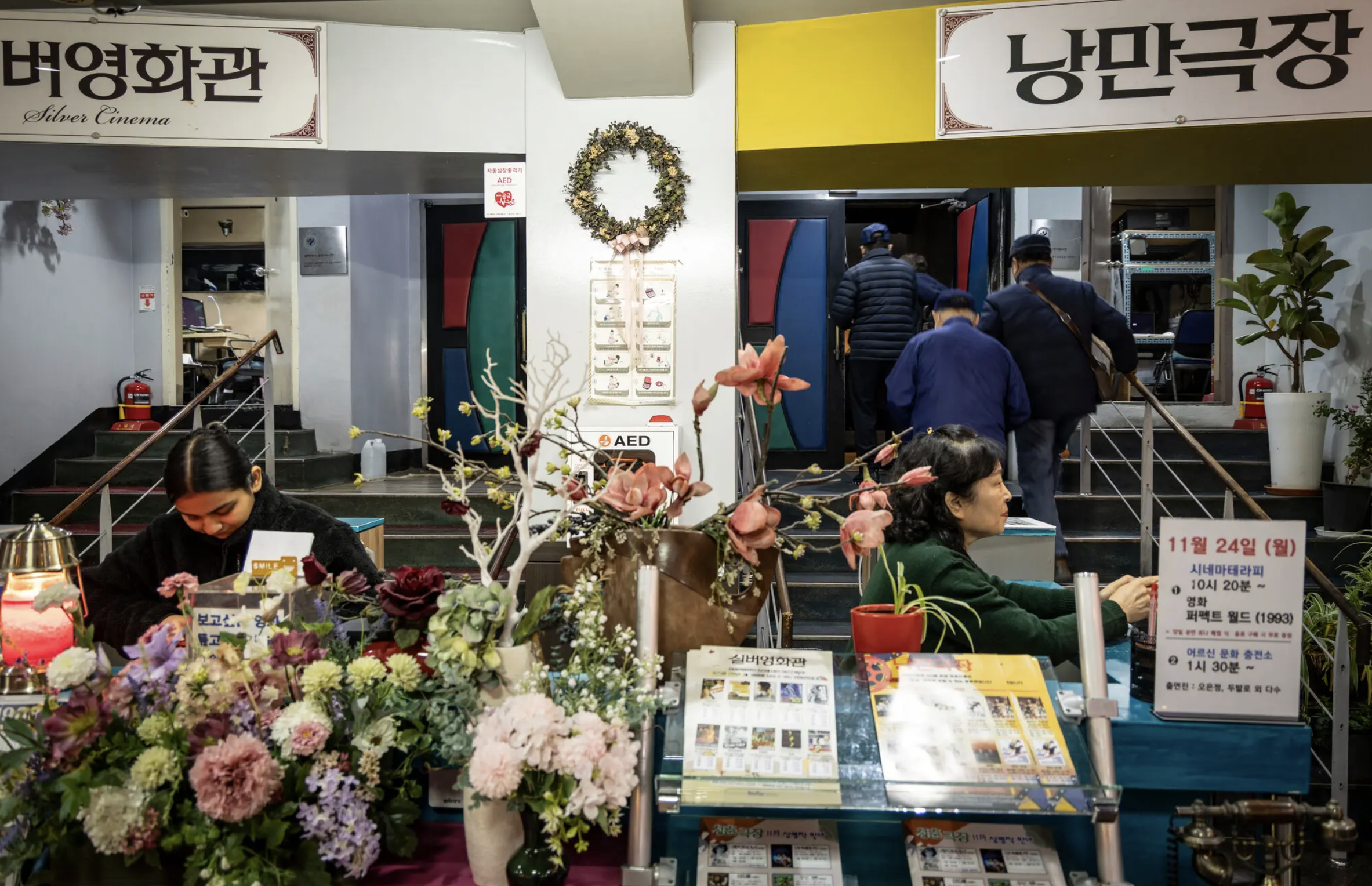 «Είναι ένα καταφύγιο για ανθρώπους άνω των 60», λέει ο 81χρονος Κιμ Γου-μπον, καθισμένος στη μεσαία σειρά. «Ένα μέρος όπου μπορείς απλώς να κάτσεις και να περάσεις την ώρα σου. Όλοι γνωρίζουν αυτόν τον χώρο».
