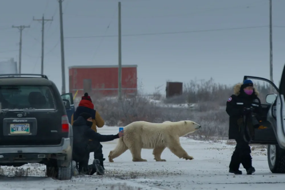 Στη βραβευμένη στο φεστιβάλ του Σάντανς (Μέγα Βραβείο Ντοκιμαντέρ) «Ενοχλητική αρκούδα» (Nuisance Bear) των Γκαμπριέλα Όζιο Βάντεν και Τζακ Γουάιζμαν παρακολουθούμε τη μεταναστευτική διαδρομή μιας πολικής αρκούδας, από την υπο-αρκτική πόλη Τσόρτσιλ του Καναδά, μέσα από παγίδες, κλουβιά και επίμονους τουρίστες, σε μια εποχή που οι εξαιτίας της κλιματικής αλλαγής τα χιόνια έχουν αρχίσει να λιώνουν, οδηγώντας την σε κατοικημένες περιοχές και φέρνοντας την σε σύγκρουση με τους κατοίκους της φυλής των Ινουίτ, εκεί που παλιότερα οι αρκούδες κρατούσαν μια απόσταση από τους ανθρώπους.