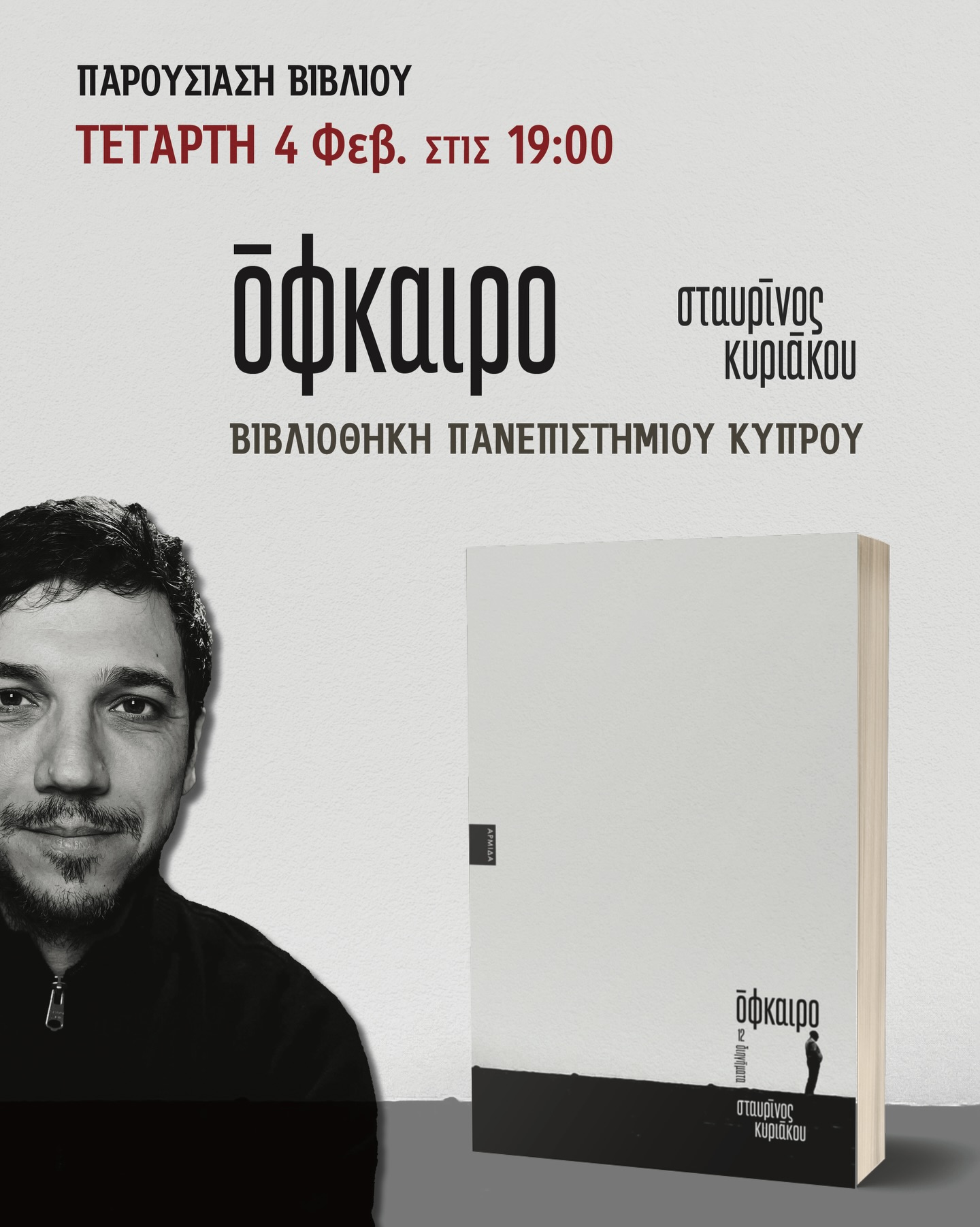 Οι Εκδόσεις Αρμίδα και το Τμήμα Βυζαντινών και Νεοελληνικών Σπουδών του Πανεπιστημίου Κύπρου προσκαλούν το κοινό στην παρουσίαση του βιβλίου «Όφκαιρο» του Σταύρινου Κυριάκου.
