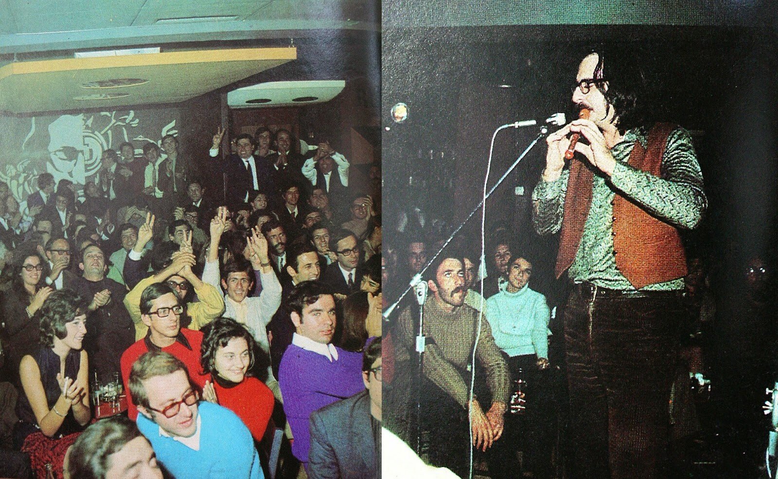 Φωτογραφία του Διονύση Σαββόπουλου, στο Rodeo ενώ παρουσιάζει τον κύκλο τραγουδιών «Το Περιβόλι του Τρελλού» (Χειμώνας 1969-1970).