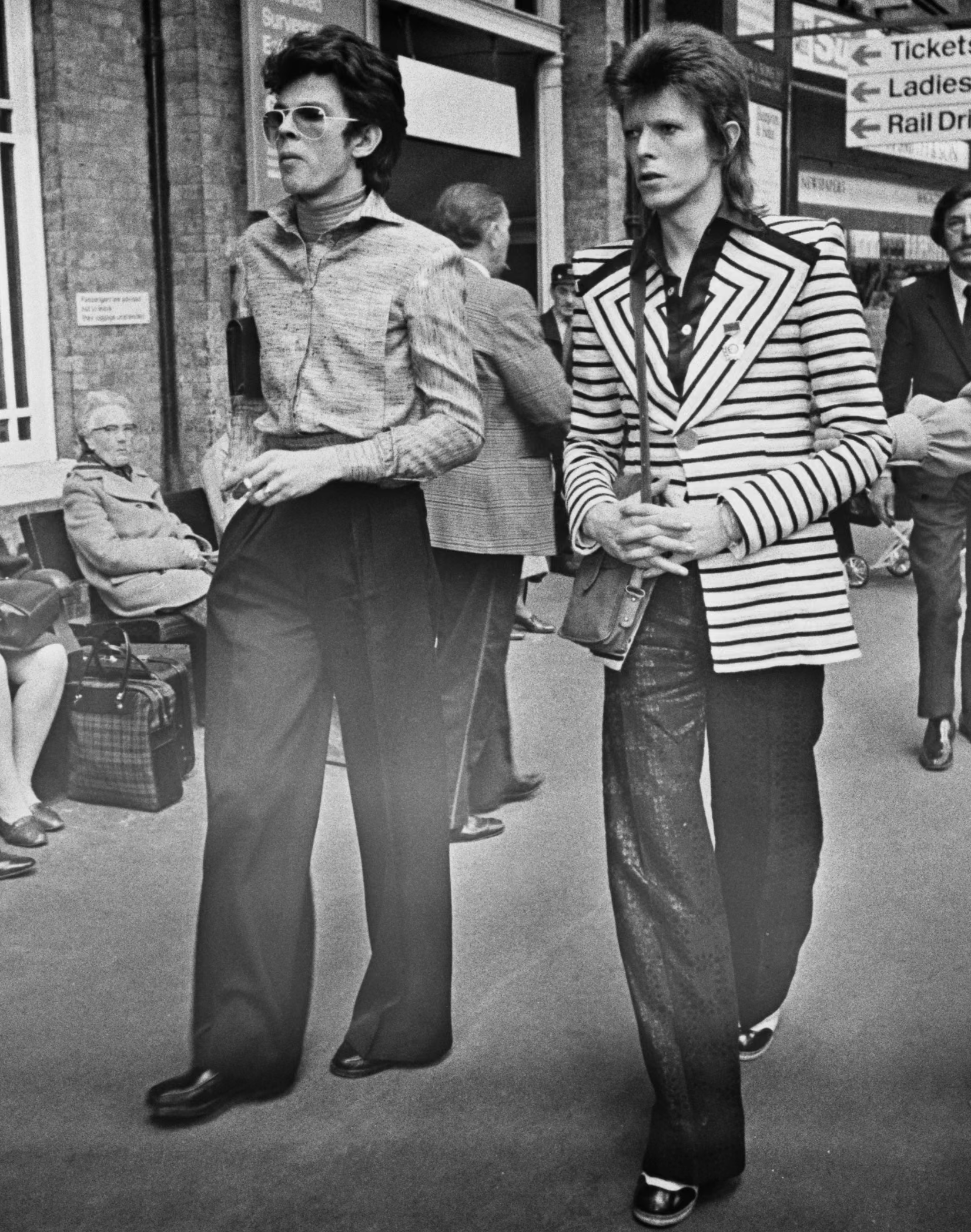 Ο Price και ο David Bowie στον σταθμό King’s Cross, στο Λονδίνο, το 1973. Φωτογραφία: Evening Standard / Getty Images